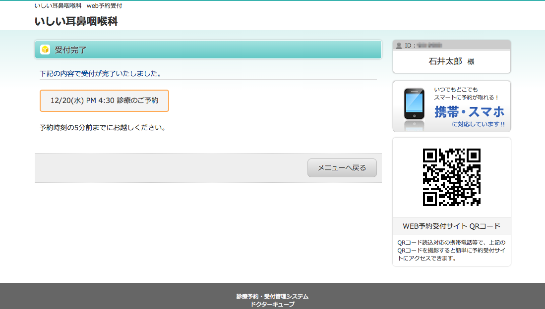 https://ssc2.doctorqube.com/ishiicl/アクセス後の手順は画面がナビゲートします。QRコードが読み取れない場合は、お手数ですがURLをご入力ください。ご利用の前にお手元に診察券をご用意ください。